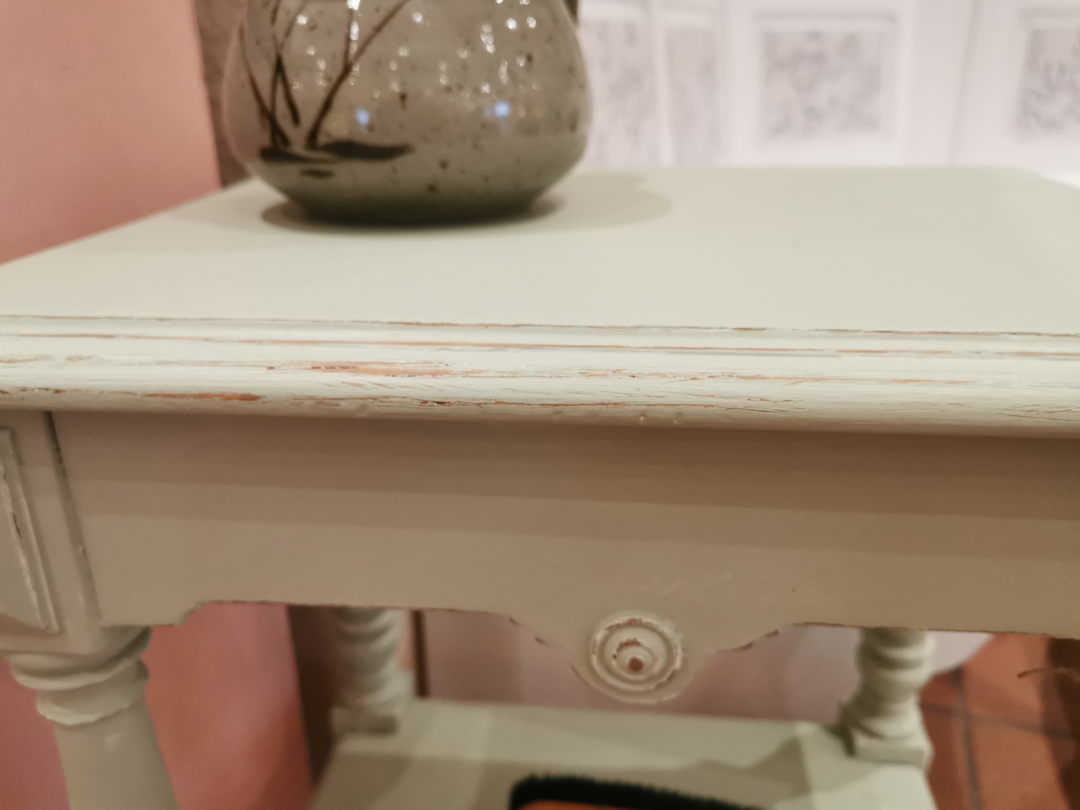 Else ist ein hübsches, kleines Tischchen und hat von AufgeMIETZt einen Grünton erhalten. Die angeschliffenen Bereiche verleihen ihr einen Shabby-Look.