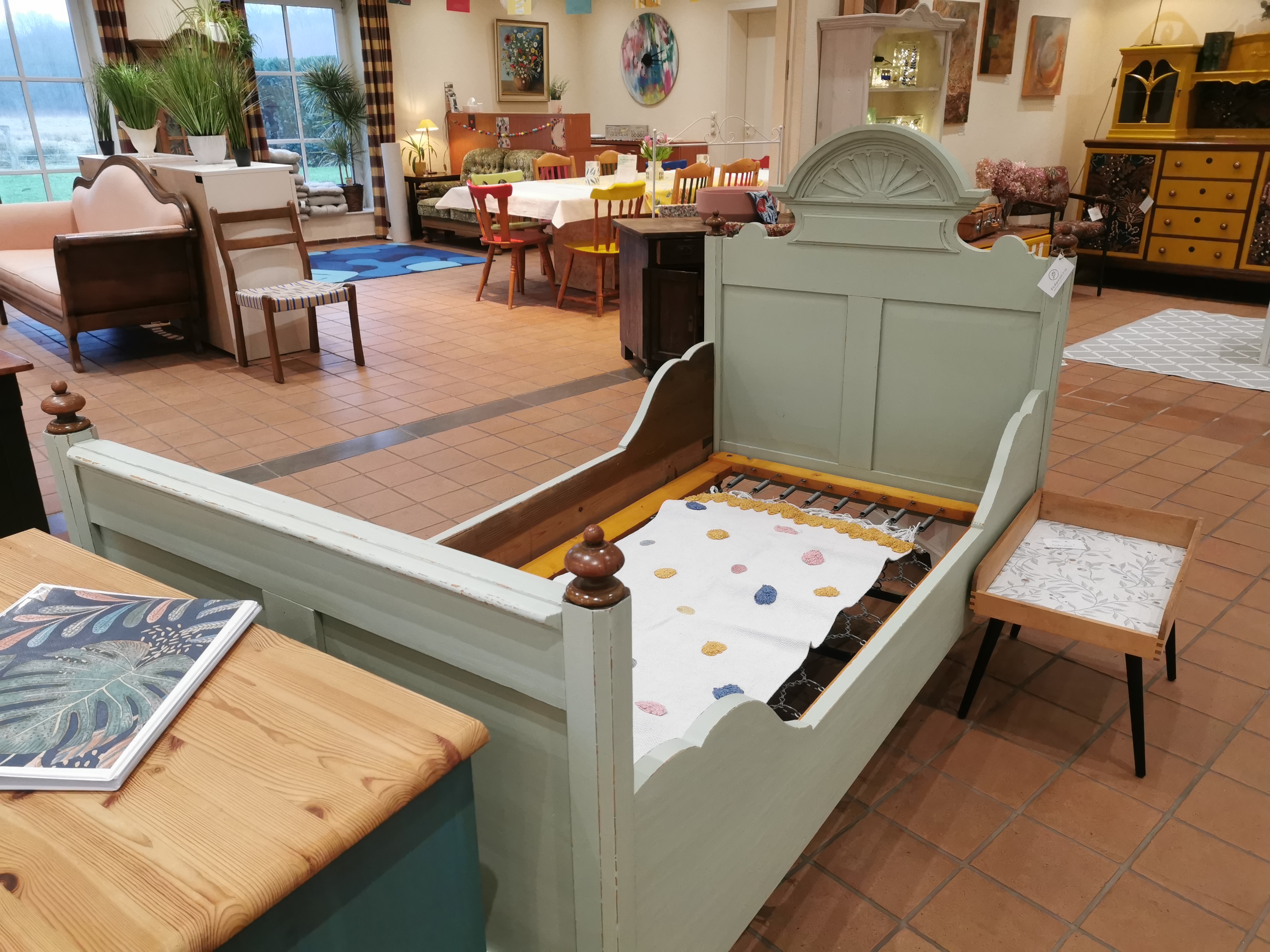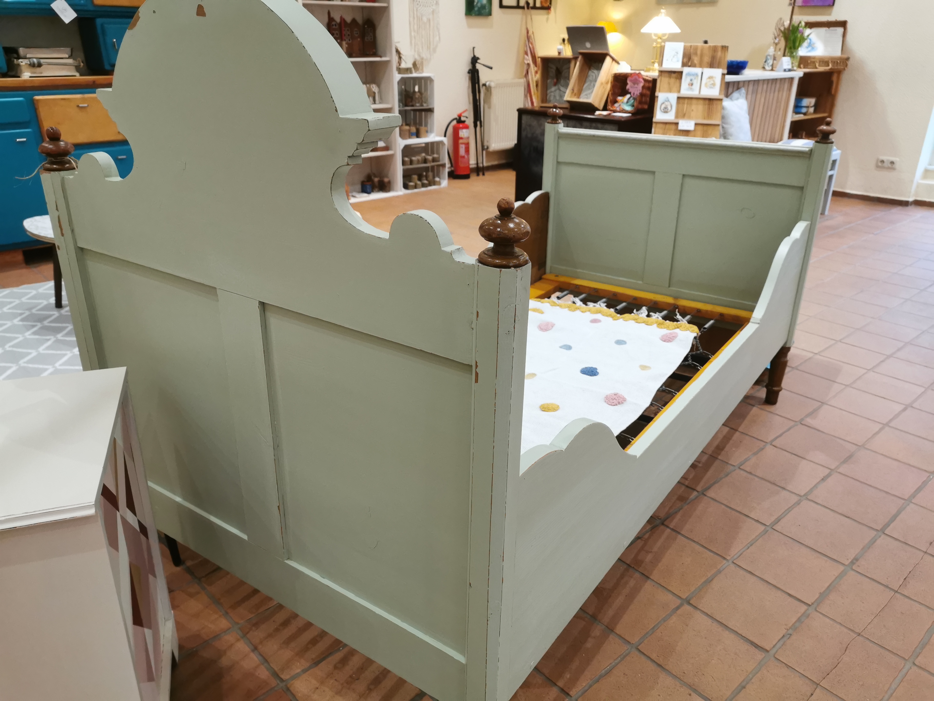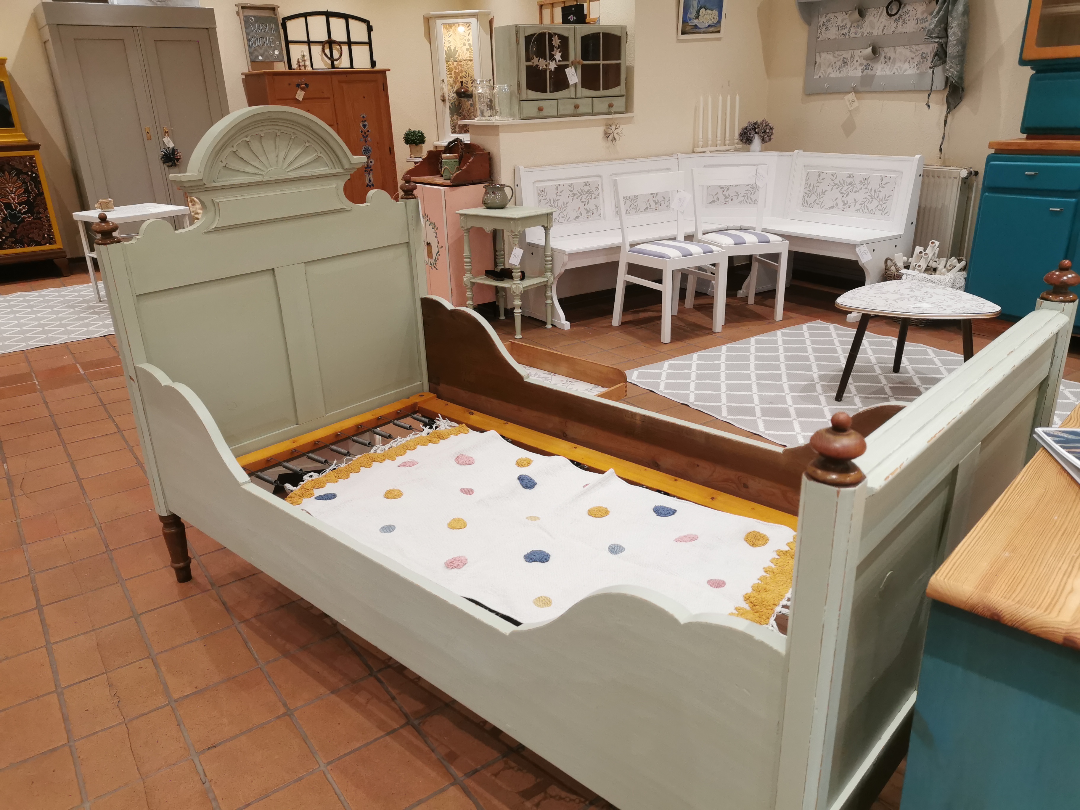 Betti wohnte vormals in einem Kapitänshaus in Schleswig - direkt am Wasser. Sie bettete einige Seeleute und durfte ihre bisherige Zeit in einem historischen Haus verbringen. Nun wurde sie mit einem sanften Grünton aufgehübscht und sucht ein neues Zuhause. Die Maße lauten 90 cm x 180 cm x 73 cm (HxLxB). Preis: 499,00 € |