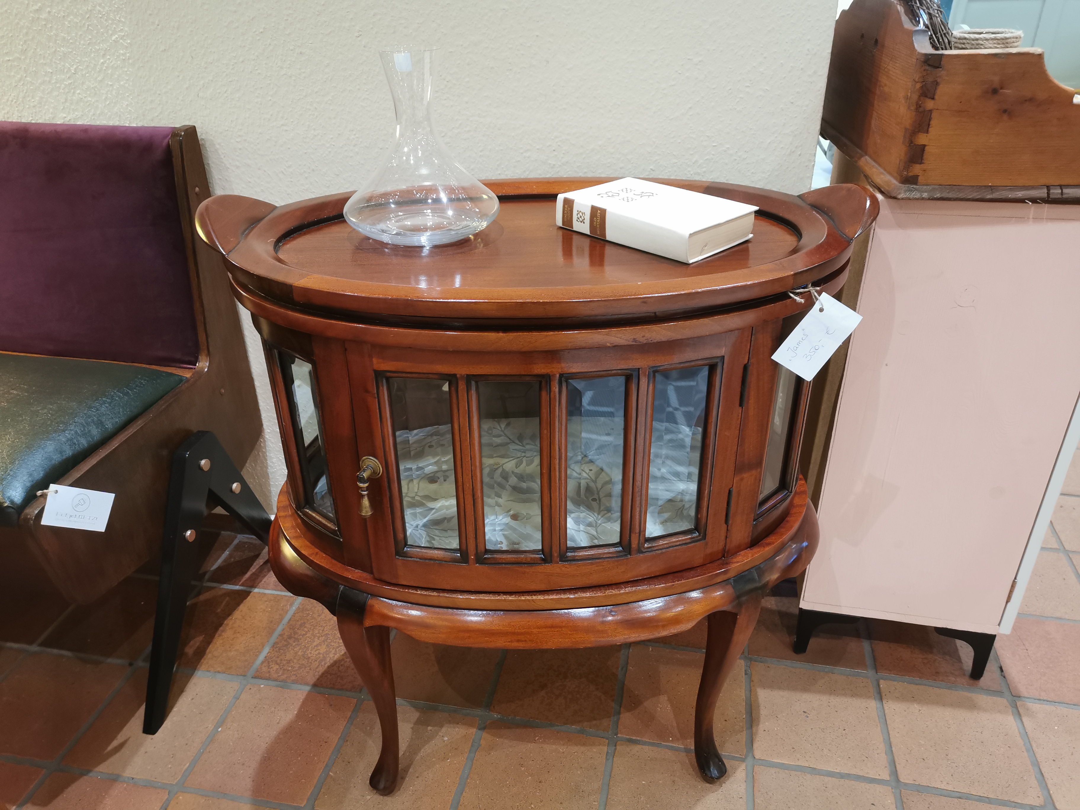 James ist ein englischer Bartisch mit Diamantschliff-Glasscheiben. Er besticht durch seine Eleganz und überzeugt sowohl Damen als auch Herren.